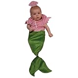 I bought this for my 3 month old baby. It was really adorable when she had it on, but after 15 to 20 minutes, she absolutely hated it. Plus, the top part of the costume didn't fit very well and looked kinda droopy. You can see what I mean in the product picture.Get more detail about Deluxe Baby Bunting, Mermaid Costume, 1 to 9 Months.